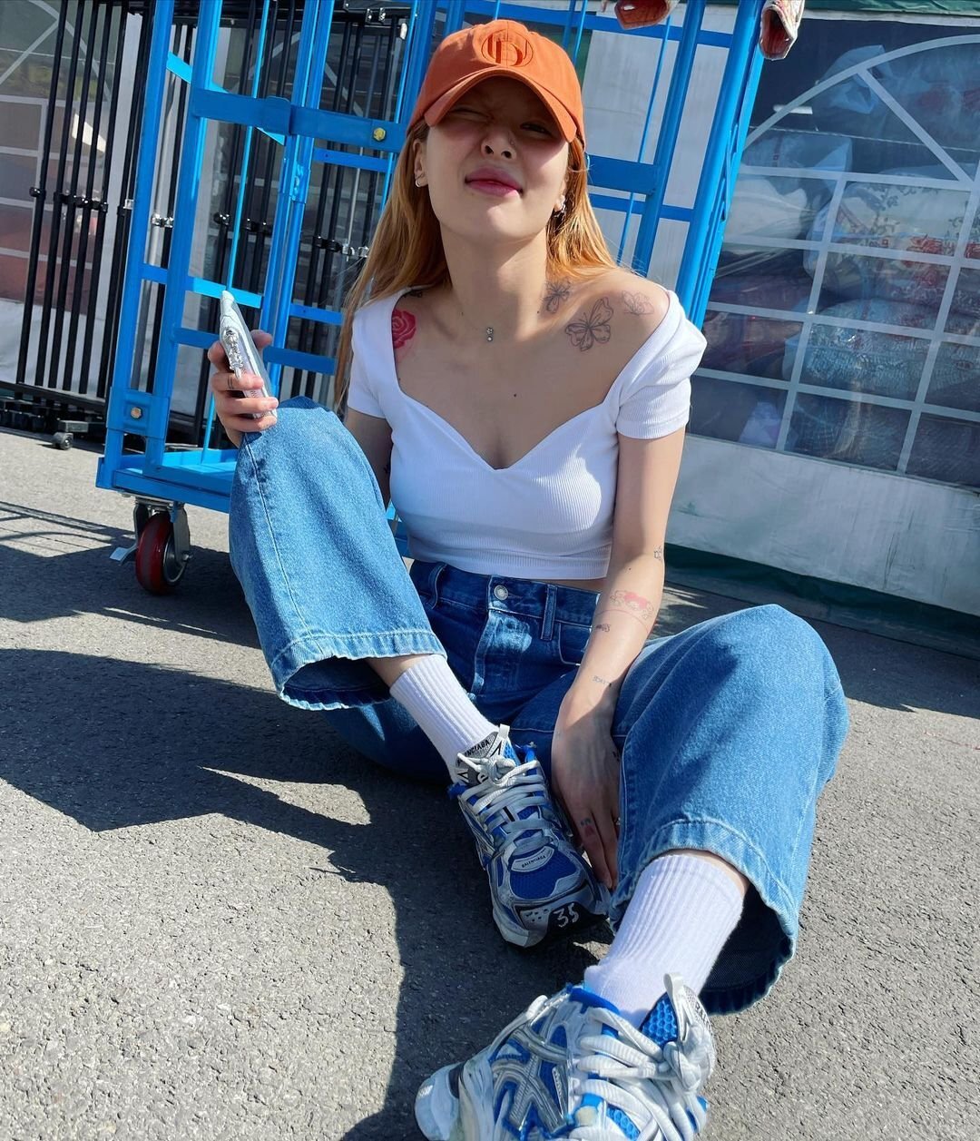 민니처럼 과감한 컬러의 볼캡ㅇ르 코디해보는 건 어떨까요?