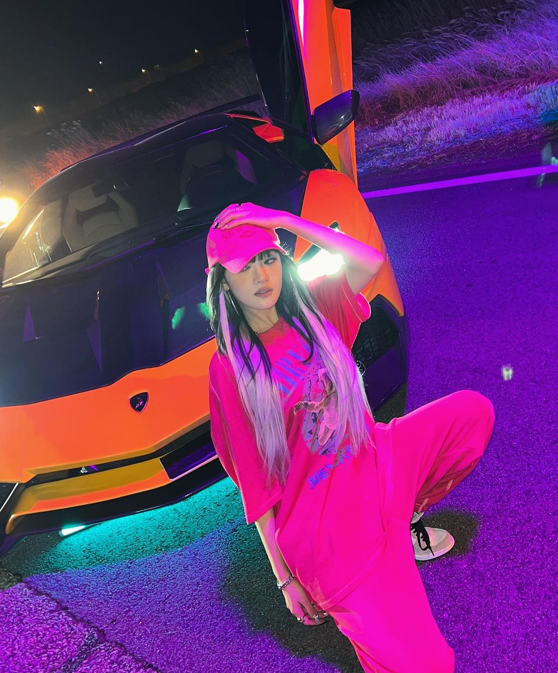 여기에 핫핑크 볼캡으로 인간